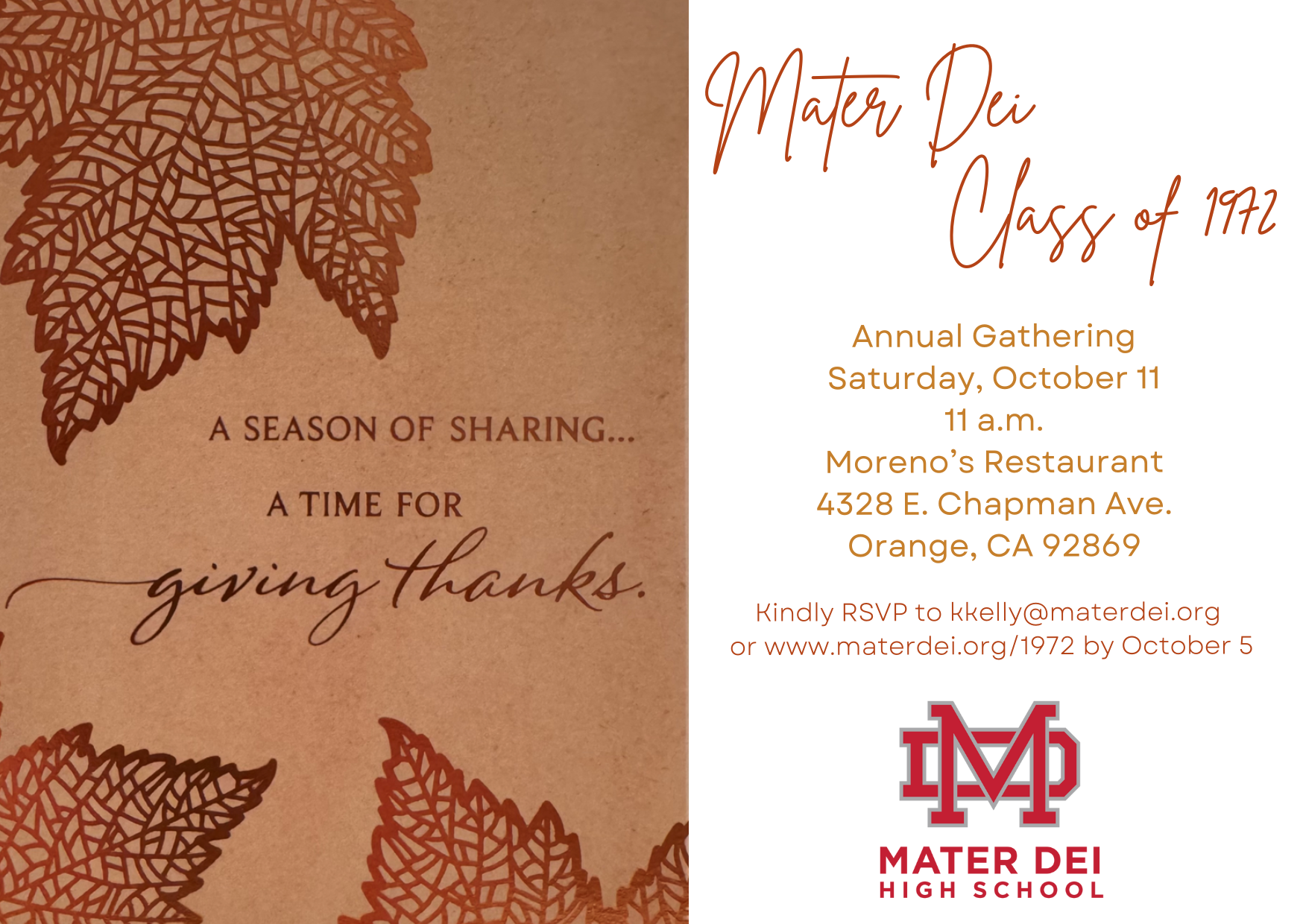 Saturday, October 11, 11 a.m. - Class of 1972 Lunch